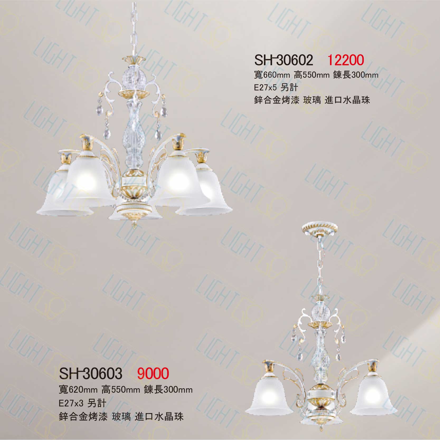 金雙鶴目錄 SH-30602(5燈) SH-30603(3燈)【E27光源另計】 NT$3,600 NT$3,600 可選擇項目: 規格: 5燈3燈 預想訂購請電聯or加LINE 電話:02-2909-6058 LineID:@351rneld 更新日期:2025.10.16 點選次數; 30 本商品上架日期:2025年10月16日週四.