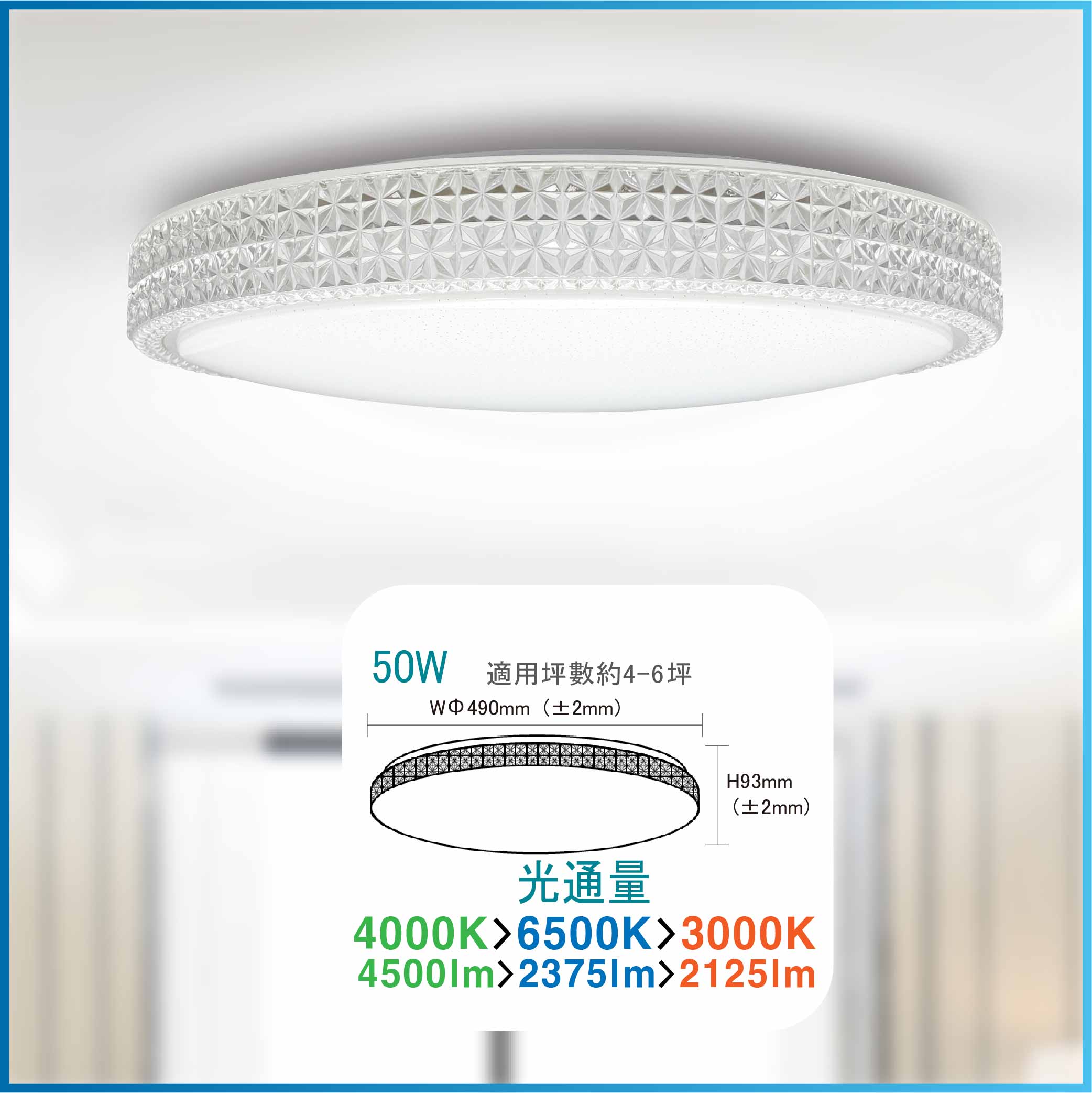 尺寸 : 【50W-Φ490xH93mm ±2mm】