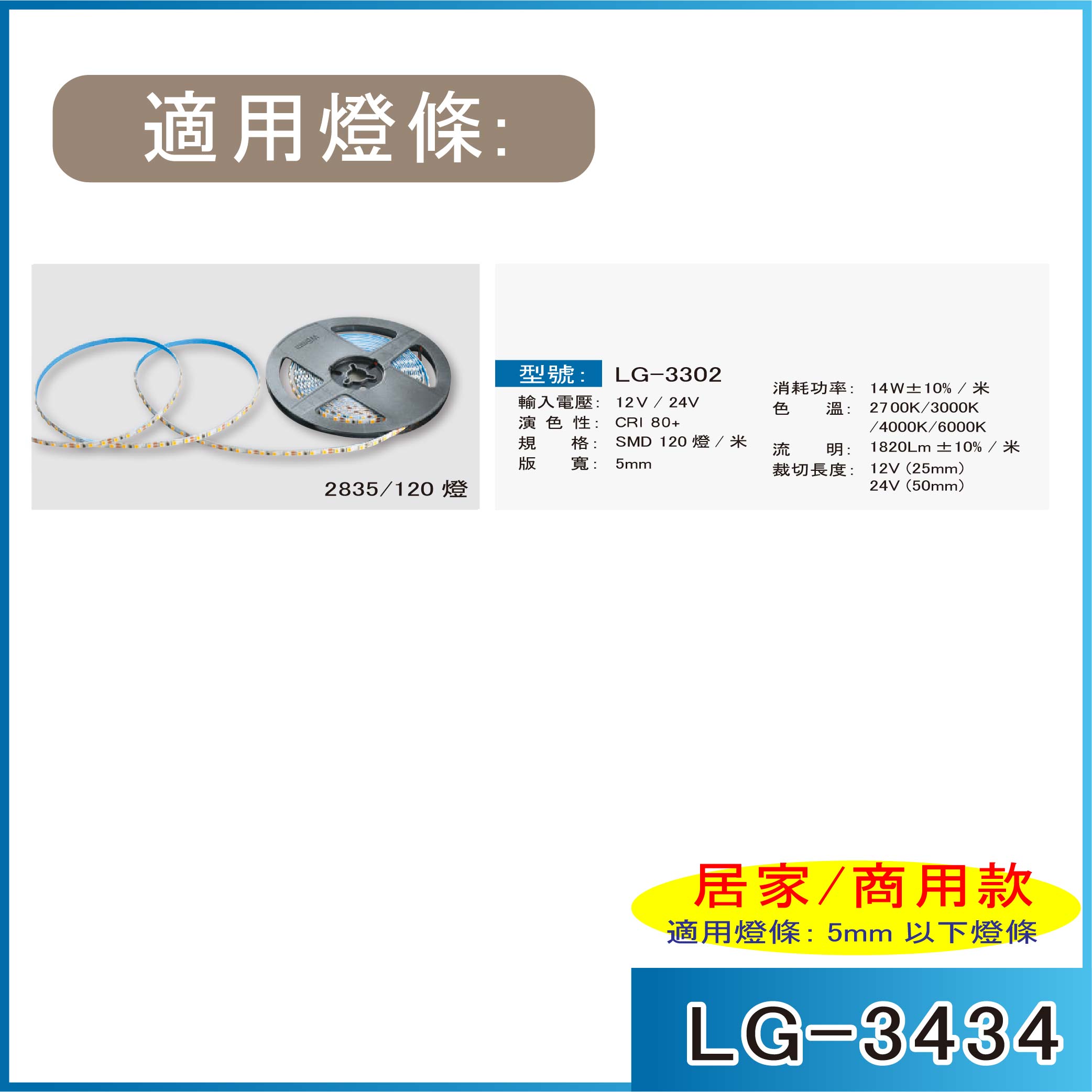 萊購 LG-3434 0809 一般居家/商用款 鋁槽燈 NT$200 NT$200 可選擇項目: 規格: 鋁槽空台(1米) 此為訂製品,歡迎來電或於線上客服詢問報價 請先挑選>鋁槽款式+燈帶款式>需求長度>詢問客服,可協助搭配驅動器>報價 型號: LG-3434 適用燈條: LG-3302(2835燈帶) 【燈帶寬,不可大於5mm】 ★適用於一般住家,商用空間造型燈 【安裝: 吸頂燈、崁燈】 電話:02-2909-6058 LineID:@lightgo 更新日期:2024.08.13 點選次數; 502 本商品上架日期:2024年08月13日週二.