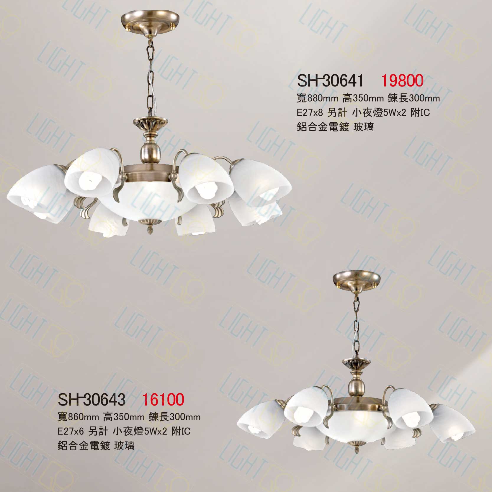 金雙鶴目錄 SH-30641(8燈) SH-30643(6燈)【E27光源另計】 NT$6,440 NT$6,440 可選擇項目: 規格: 8燈6燈 預想訂購請電聯or加LINE 電話:02-2909-6058 LineID:@351rneld 更新日期:2025.10.16 點選次數; 27 本商品上架日期:2025年10月16日週四.